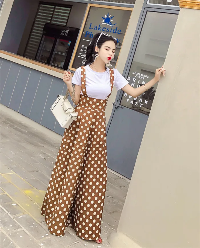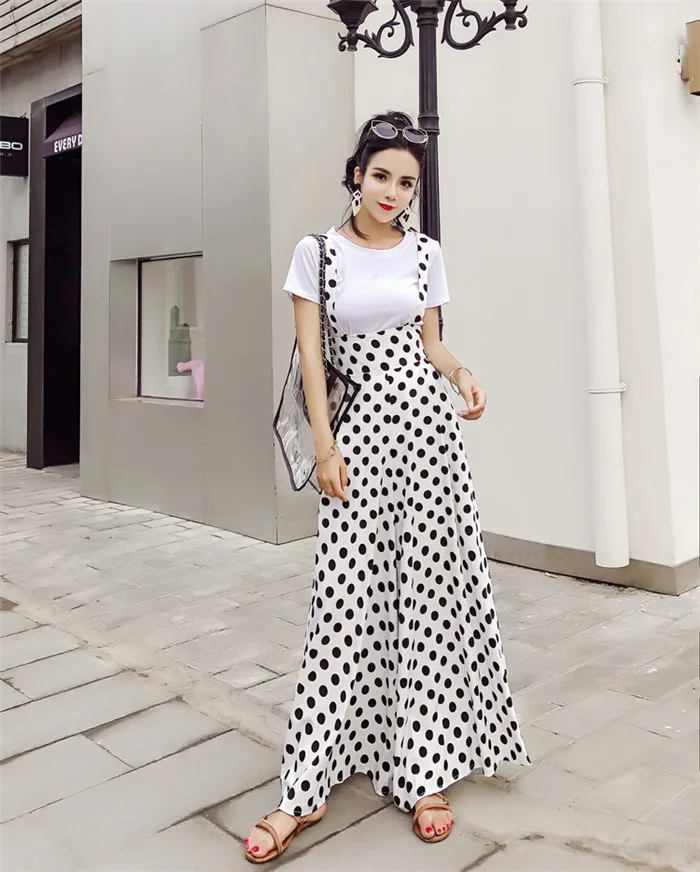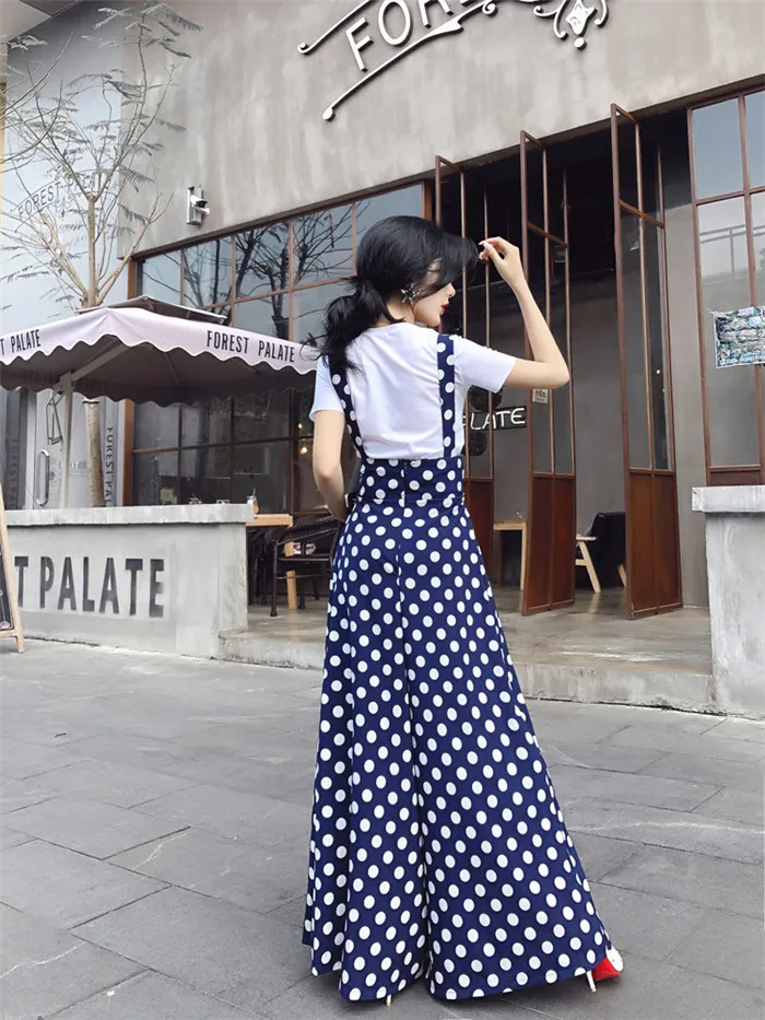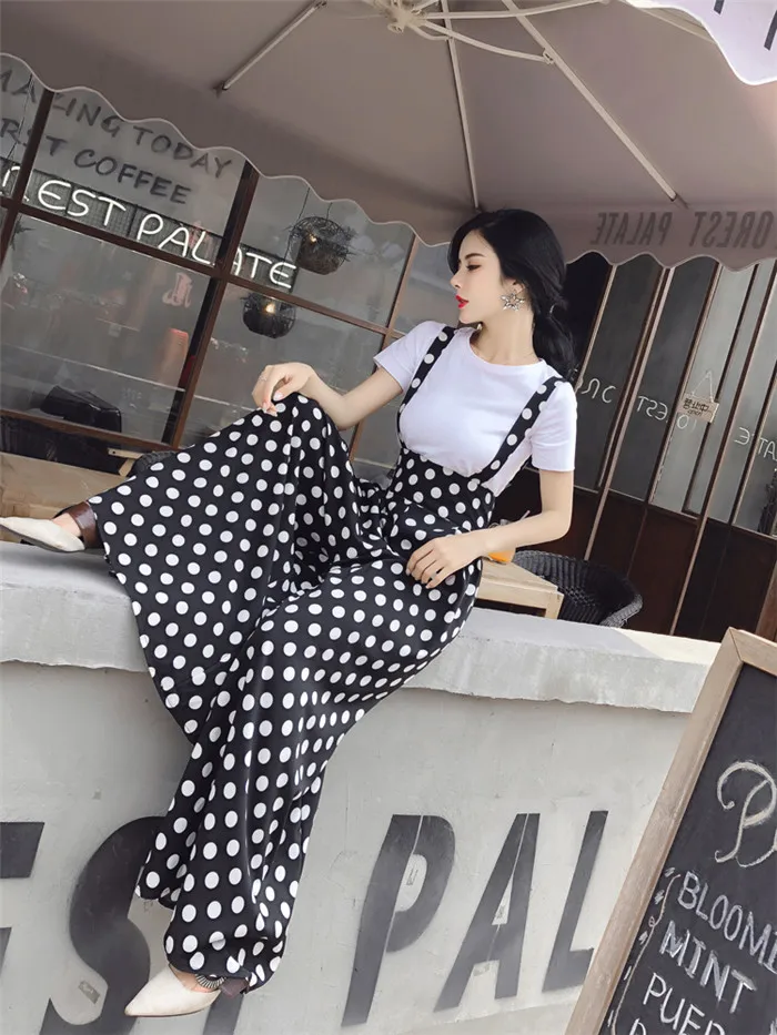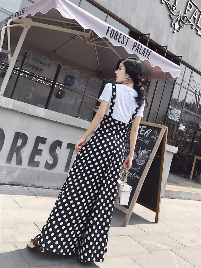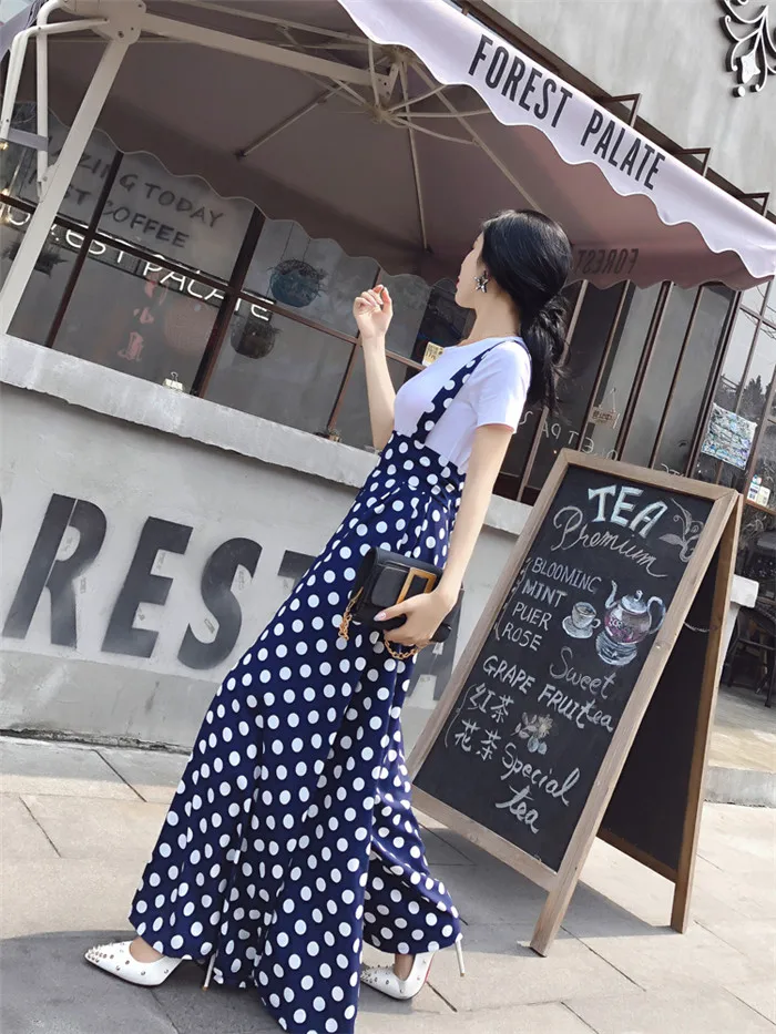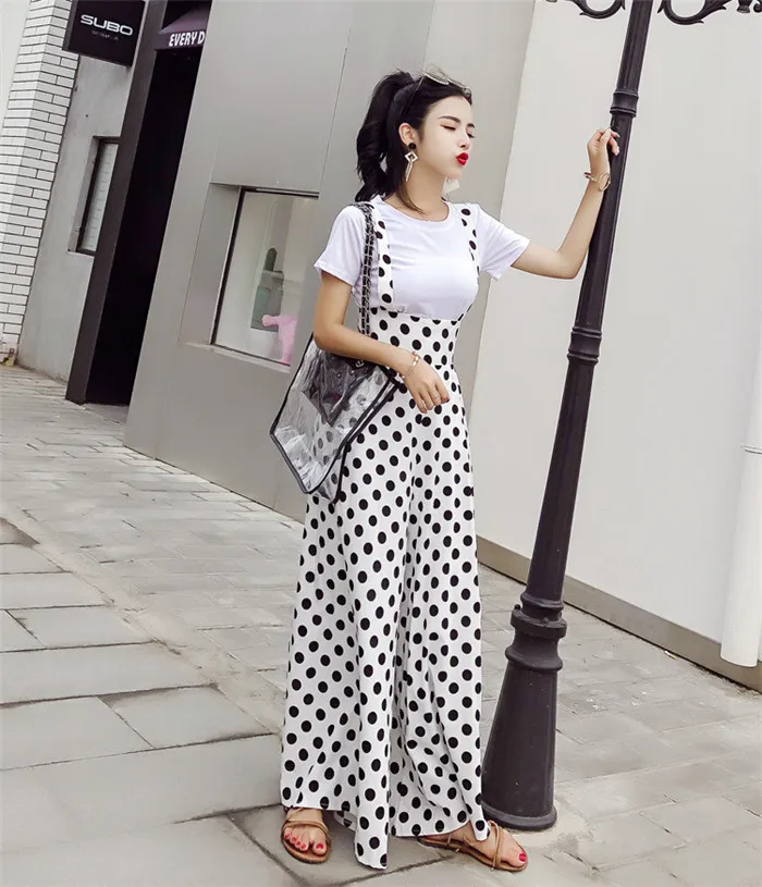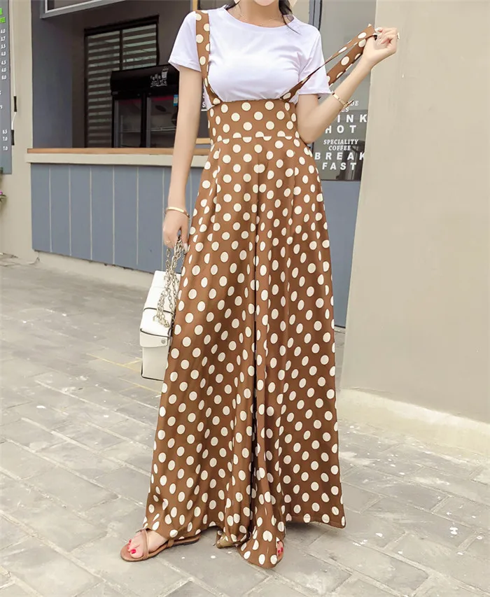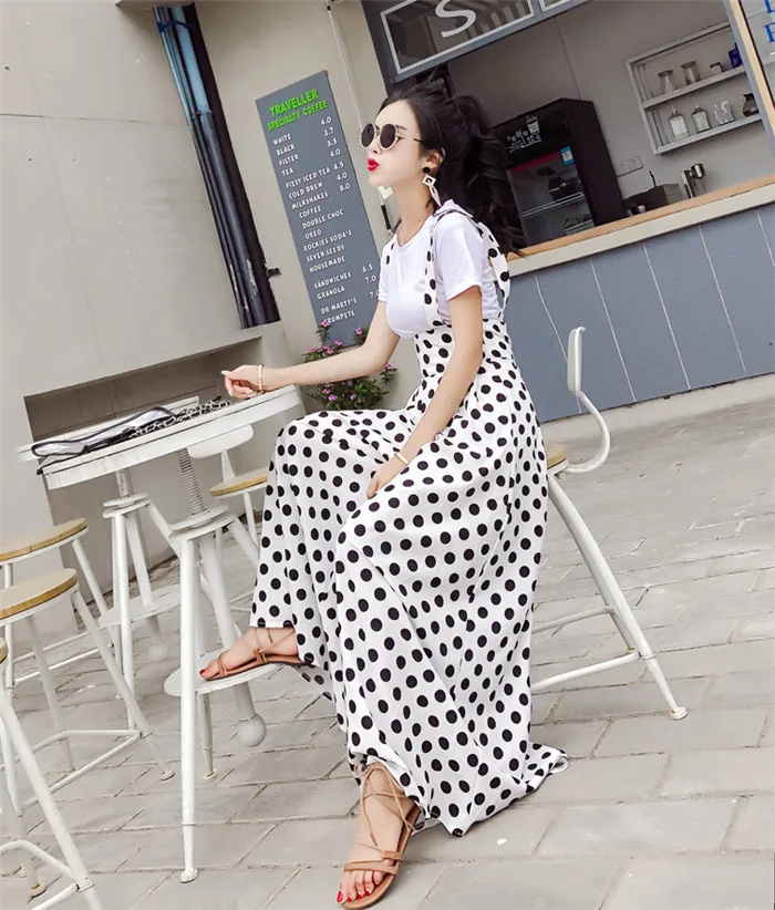 Backless Polka Dot Print Strap Chiffon Wide Leg Pants Jumpsuit