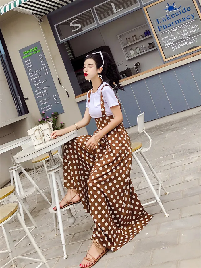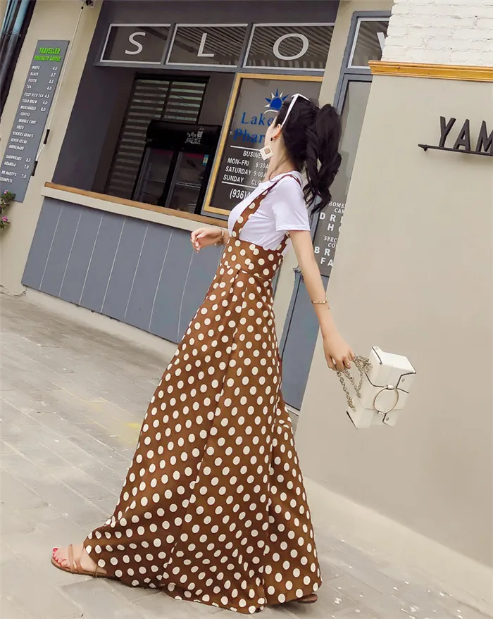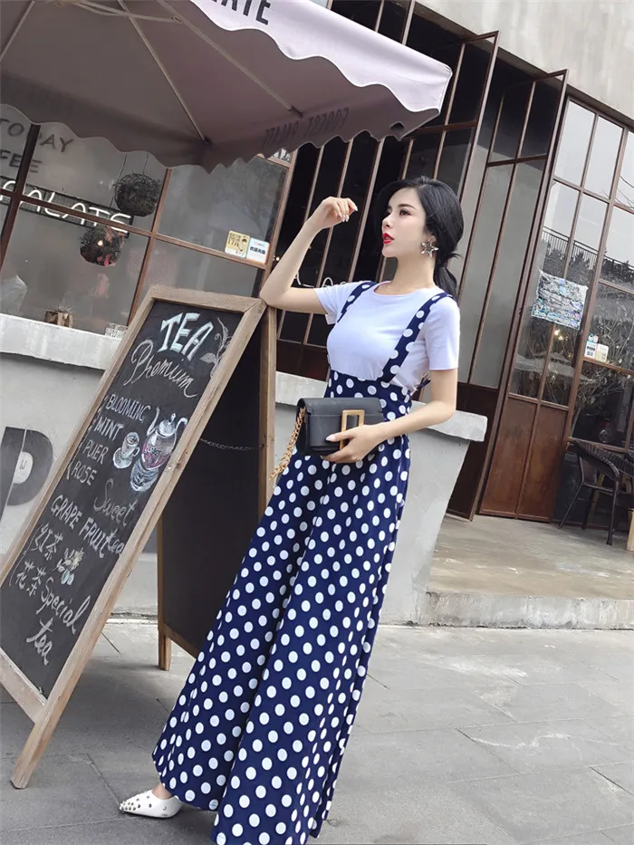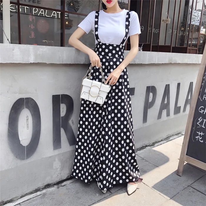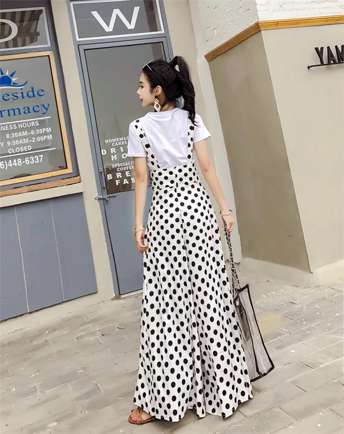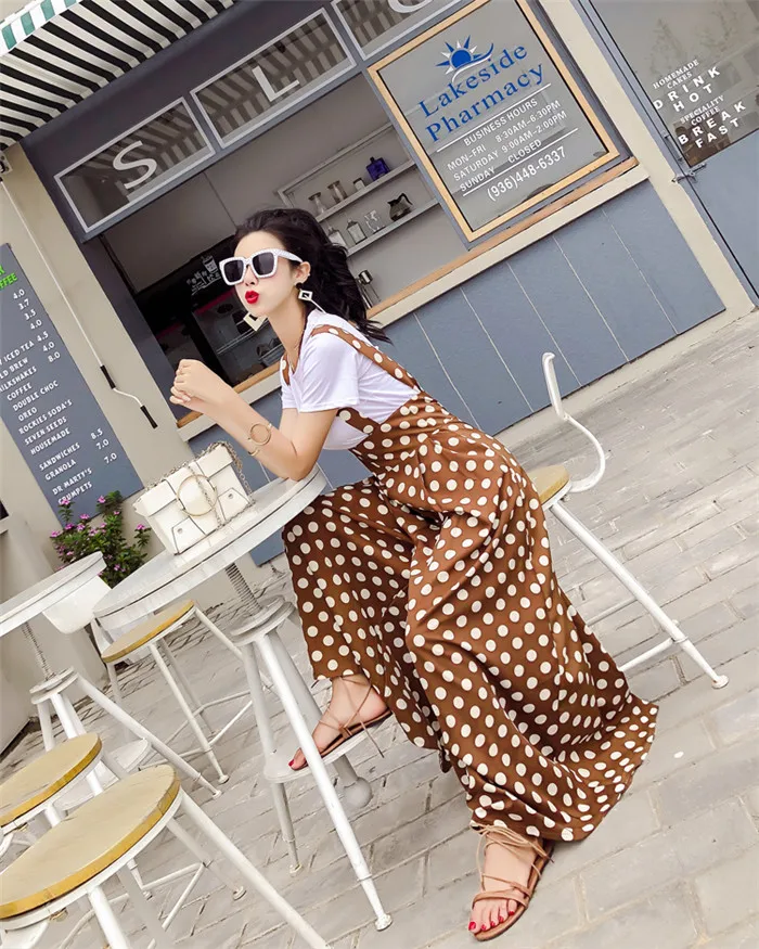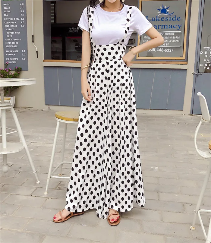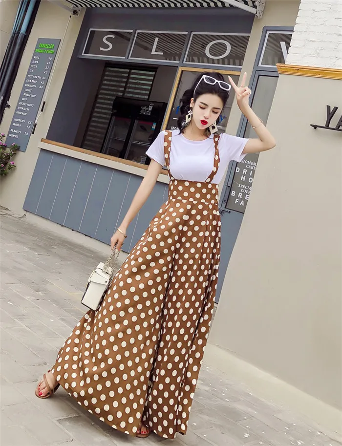 Backless Polka Dot Print Strap Chiffon Wide Leg Pants Jumpsuit