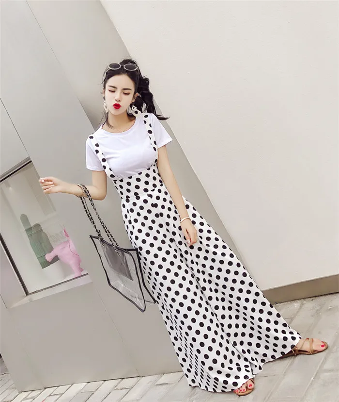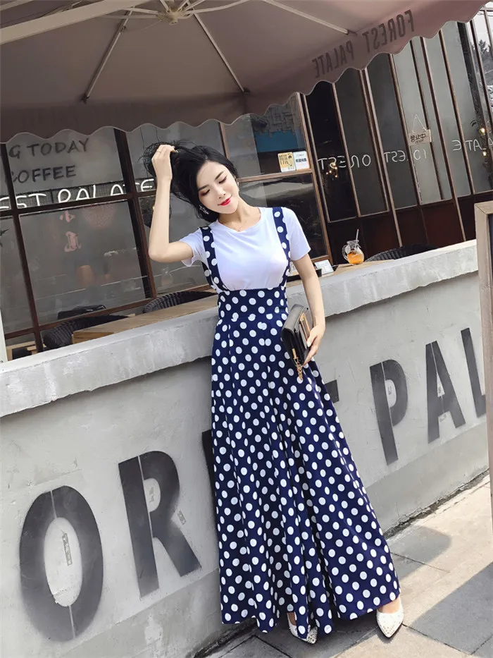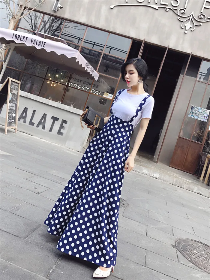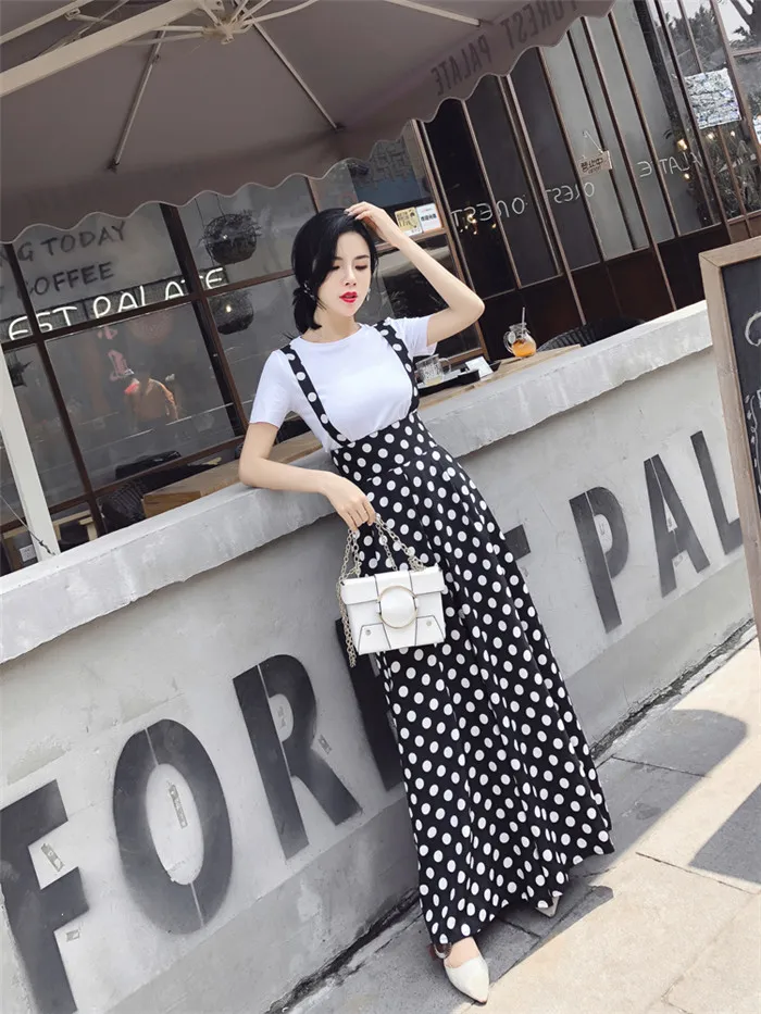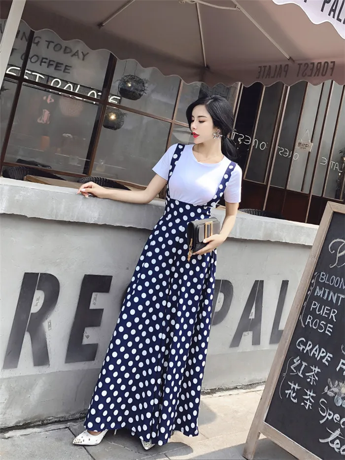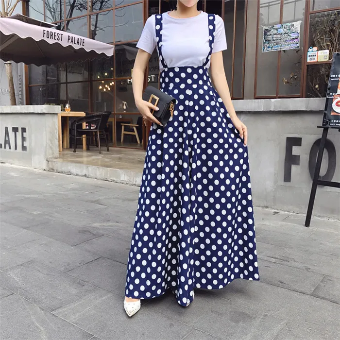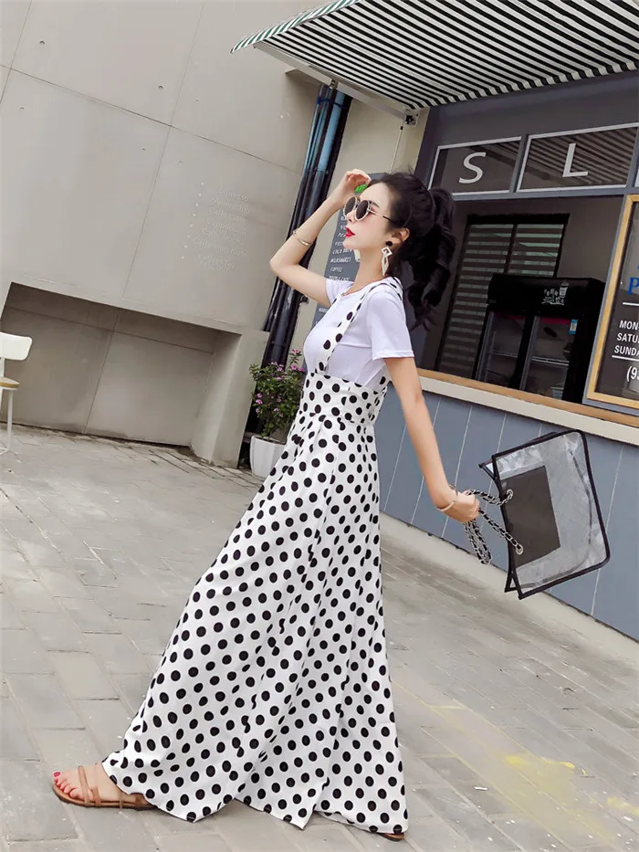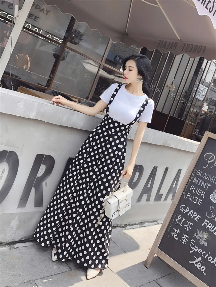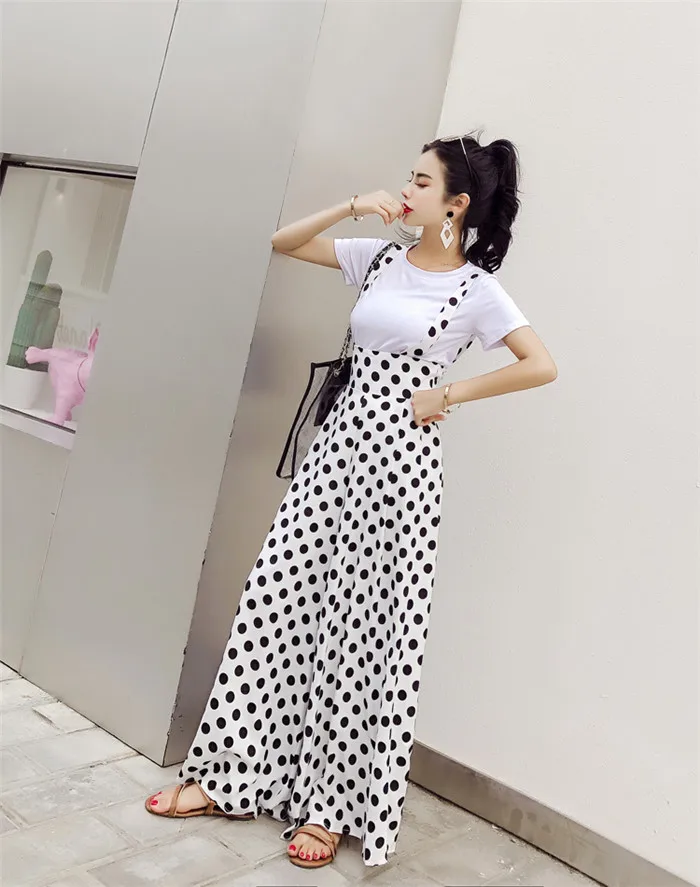 Backless Polka Dot Print Strap Chiffon Wide Leg Pants Jumpsuit