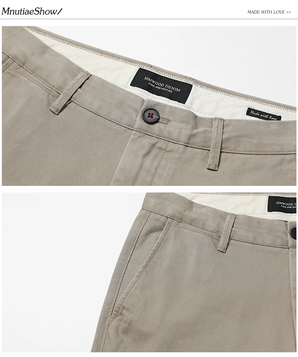Simwood Brand Spring Summer New Fashion 2021 Slim Straight Men Casual Pants 100% Pure Cotton Man Trousers Plus Size KX6033