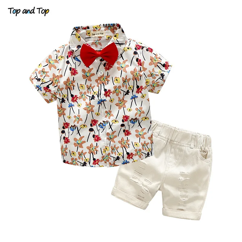 Top and Top Boys Clothing Set Summer Formal Boys Clothes Short Sleeve Shirt with Bow Tie+Shorts 2Pcs Kids Gentleman Suits